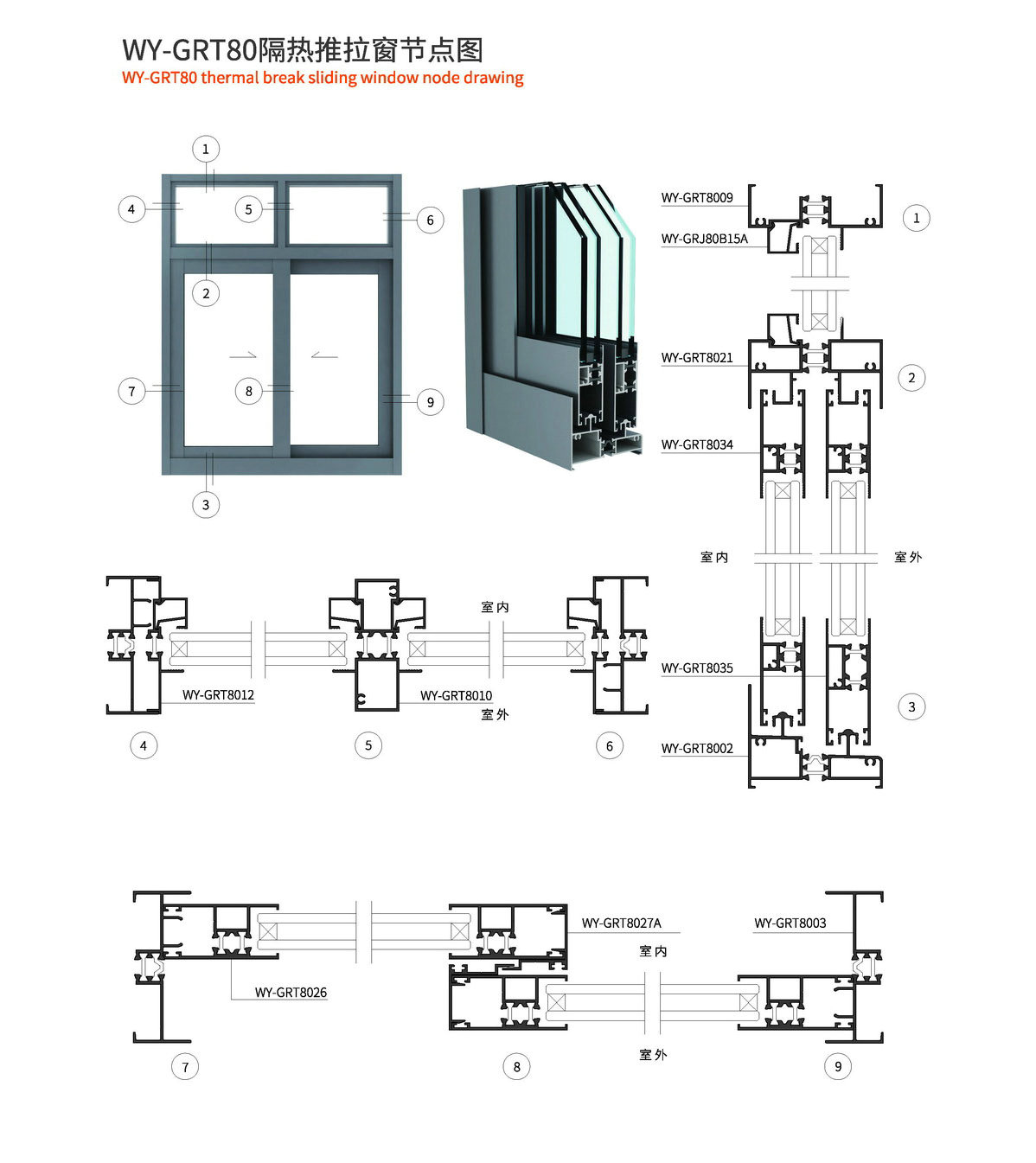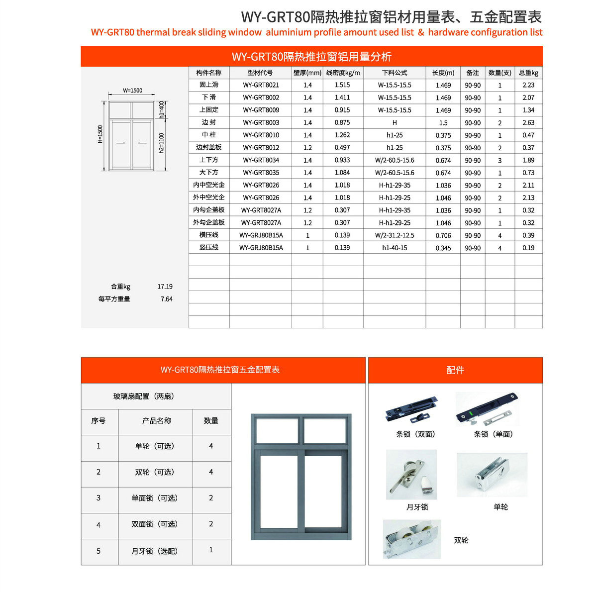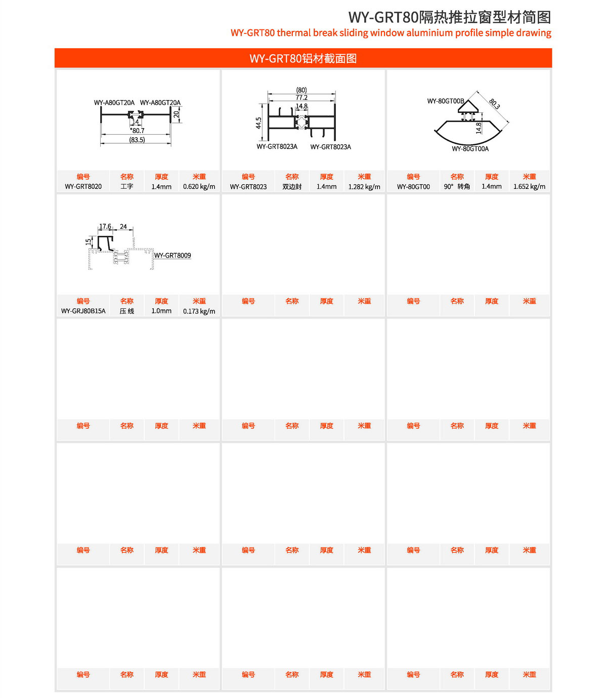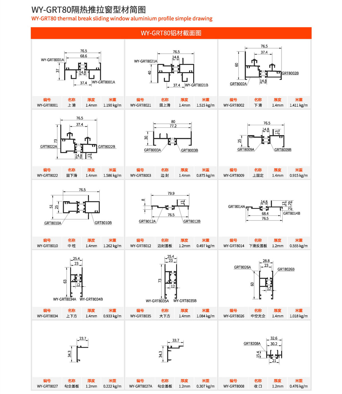 主型材:边封宽80mm,型材壁厚1.4mm;采用14.8mm隔热条,强度高,降低传导系数,保温隔热性能优越,抗拉、抗剪强度高。 连接方式:采用螺钉90度插接,加工工艺方便、简单、可靠 玻璃槽口:23mm 开启方式:水平推拉 可做窗型:两扇窗、四扇窗、转角飘窗、门联窗等 适用范围:民用建筑和工程 耗材:1.5mx1.5m标准窗型每平方耗材7.64kg