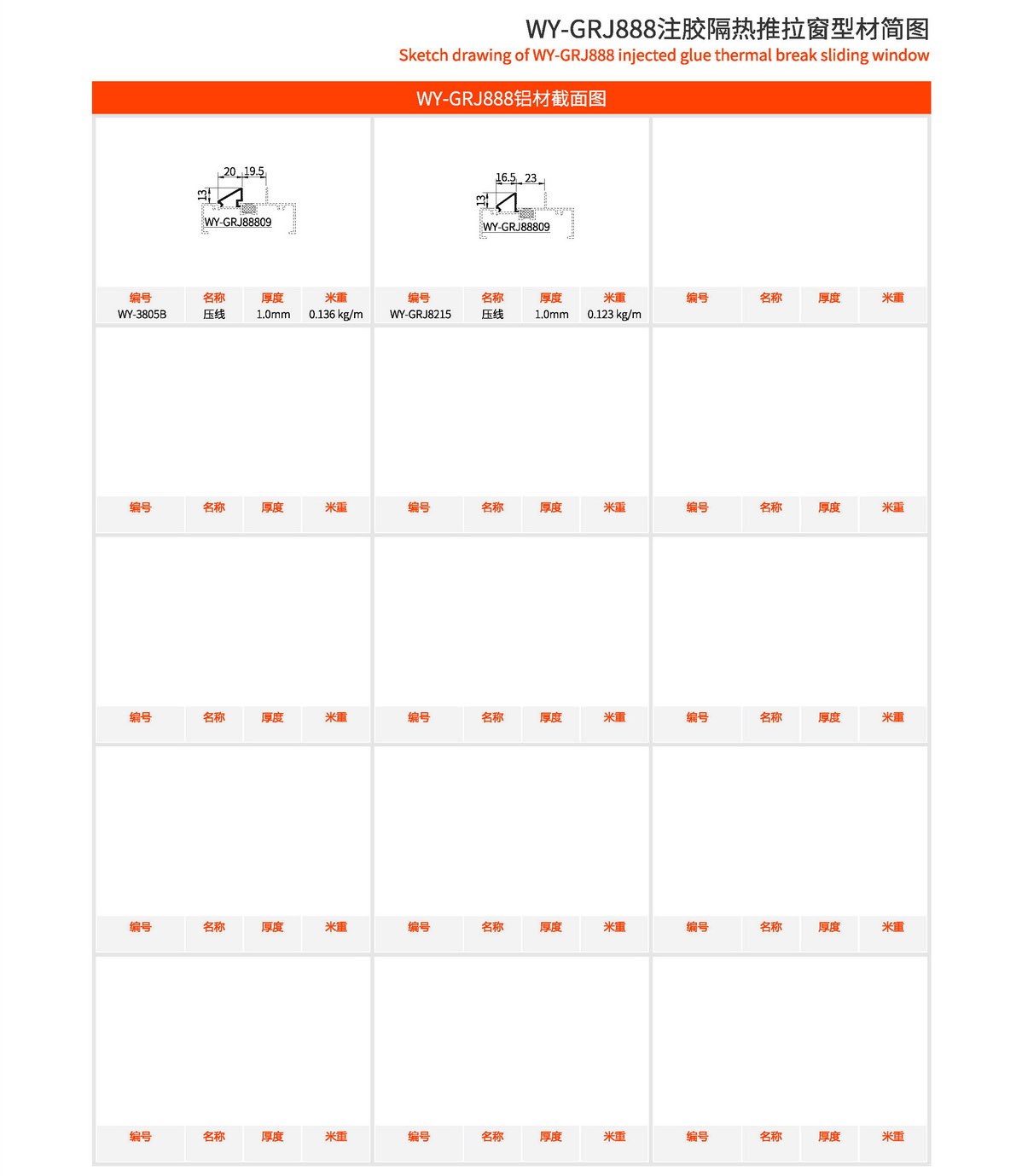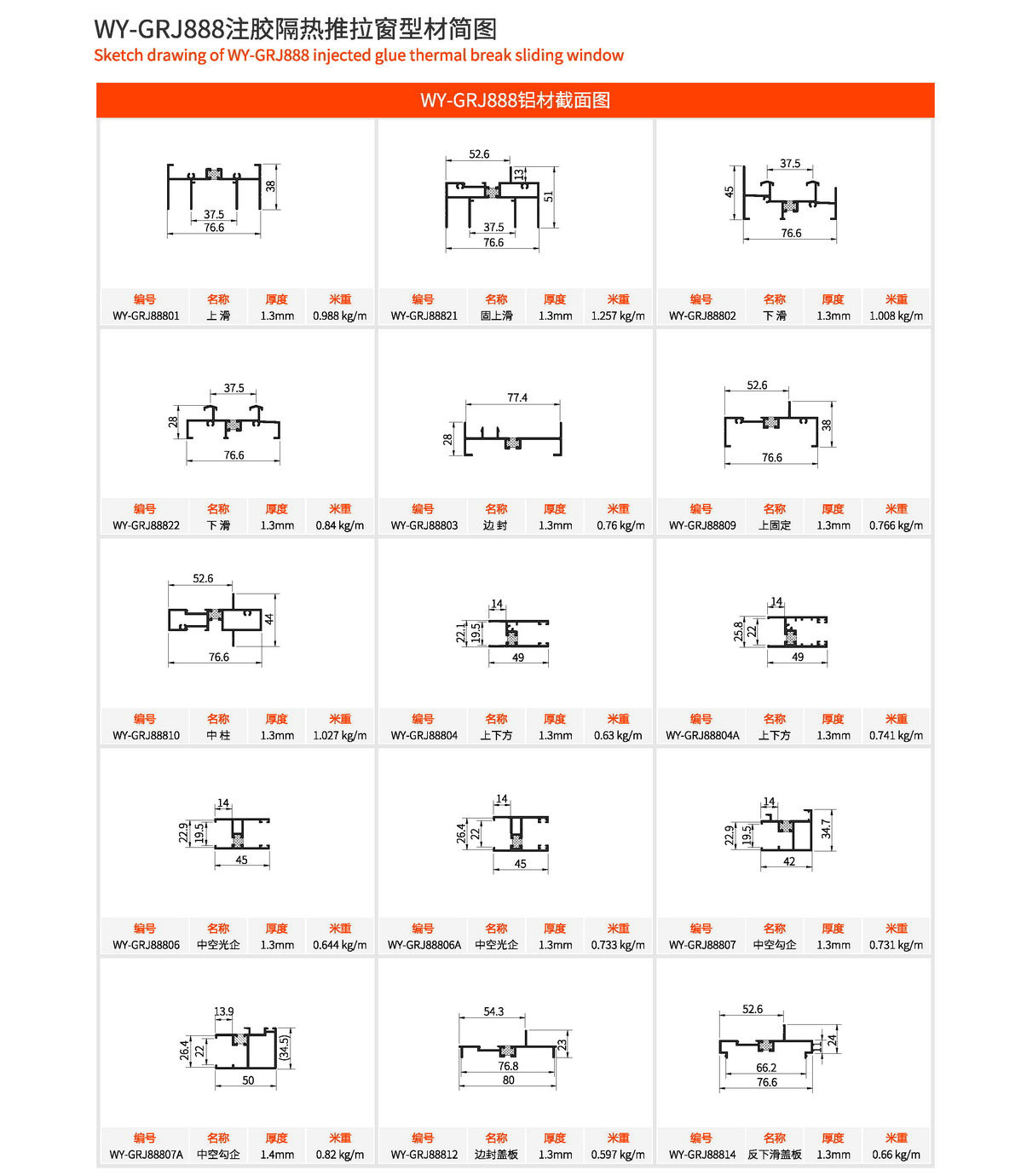 主型材:边封宽80mm,型材壁厚1.3mm;采用美式注胶断桥铝型材,强度高,降低传导系数,保温隔热性能优越,抗拉、抗剪强度高。 连接方式:采用螺钉90度插接,加工工艺方便、简单、可靠 玻璃槽口:19.5mm、22mm 开启方式:水平推拉 可做窗型:两扇窗等 适用范围:民用建筑和工程 耗材:1.5mx1.5m标准窗型每平方耗材5.7kg