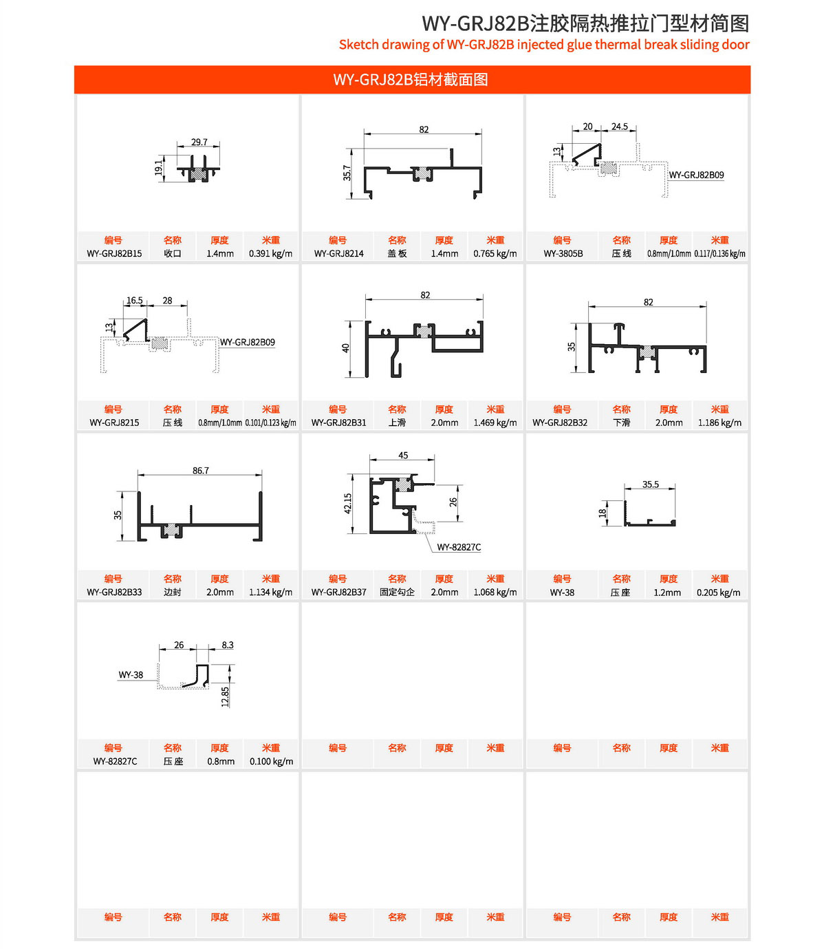 主型材:边封宽87mm,型材壁厚2.0mm;采用美式注胶断桥铝型材,强度高,降低传导系数,保温隔热性能优越,抗拉、抗剪强度高。 连接方式:采用螺钉90度插接,加工工艺方便、简单、可靠 玻璃槽口:24mm、25.6mm、27.5mm 开启方式:水平推拉 可做窗型:两扇窗、四扇窗等 适用范围:民用建筑和工程 耗材:2.5mx2.0m标准窗型每平方耗材5.8kg