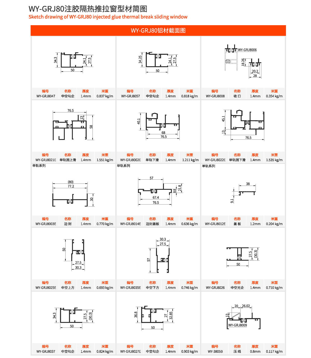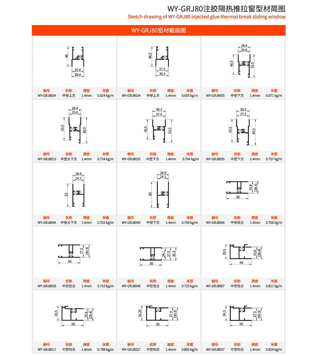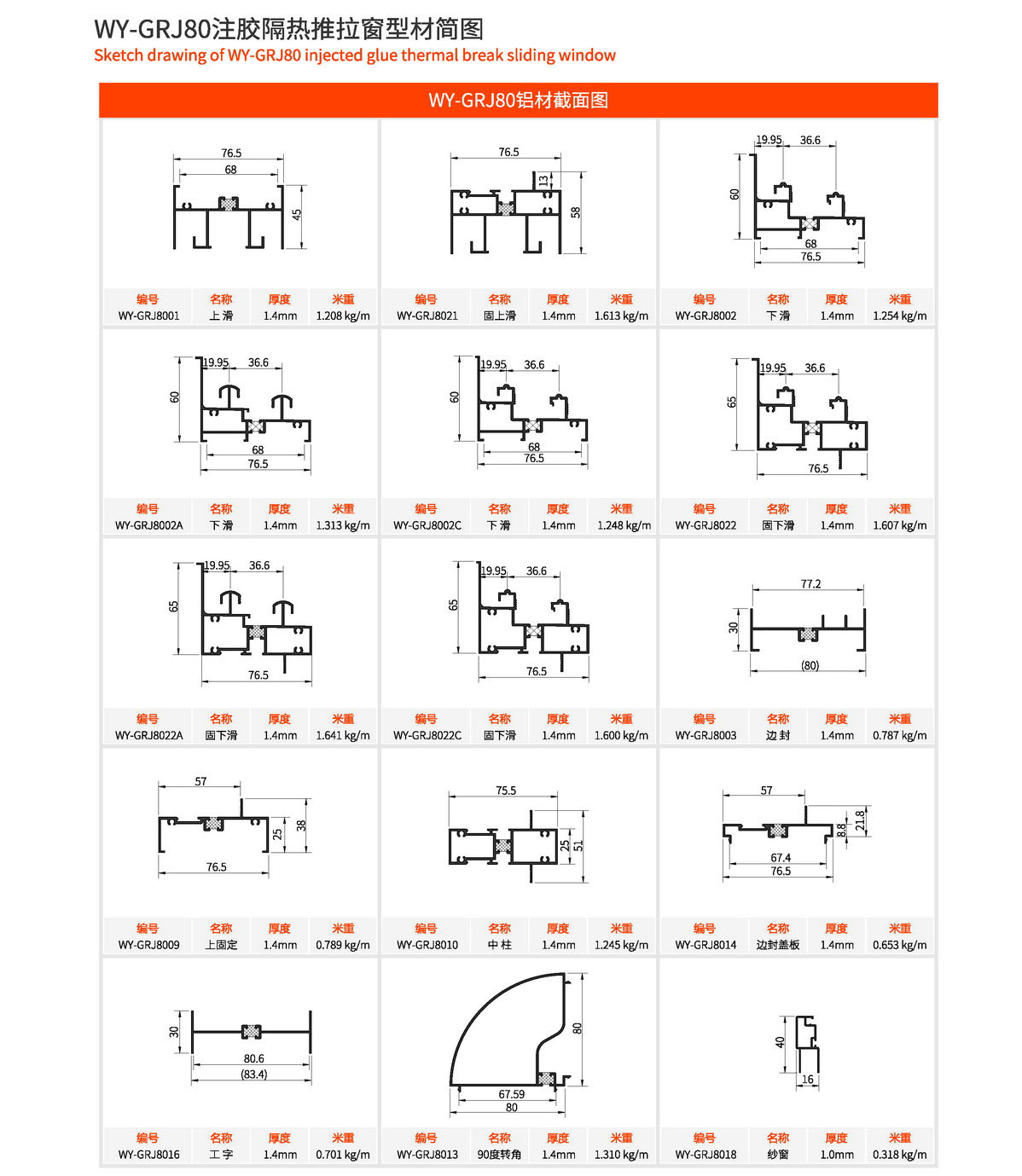 主型材:边封宽80mm,型材壁厚1.4mm;采用美式注胶断桥铝型材,强度高,降低传导系数,保温隔热性能优越,抗拉、抗剪强度高。 连接方式:采用螺钉90度插接,加工工艺方便、简单、可靠 玻璃槽口:24mm、25.6mm、27.5mm 开启方式:水平推拉 可做窗型:两扇窗、四扇窗、转角飘窗、门联窗等 适用范围:民用建筑和工程 耗材:1.5mx1.5m标准窗型每平方耗材6.4kg