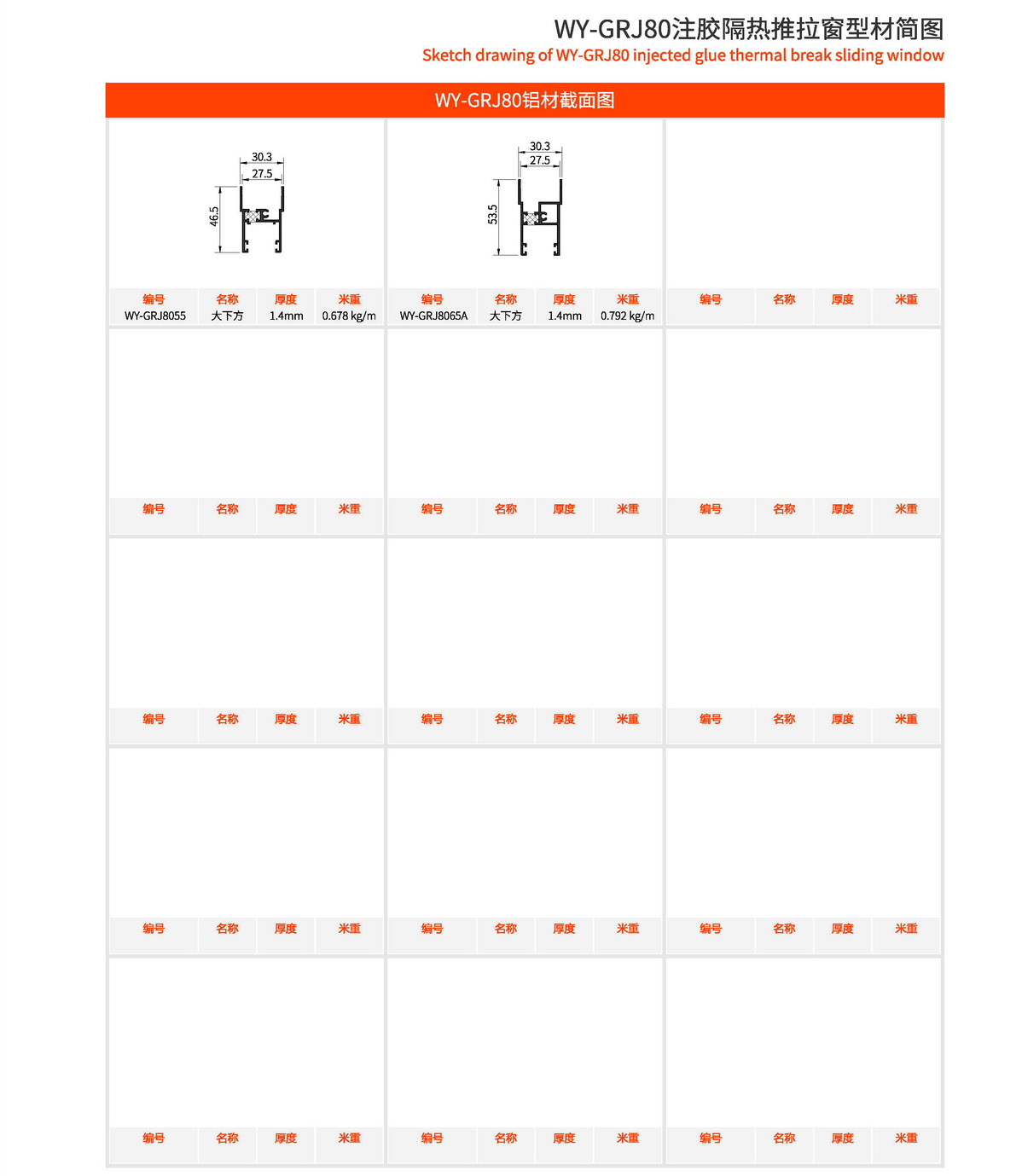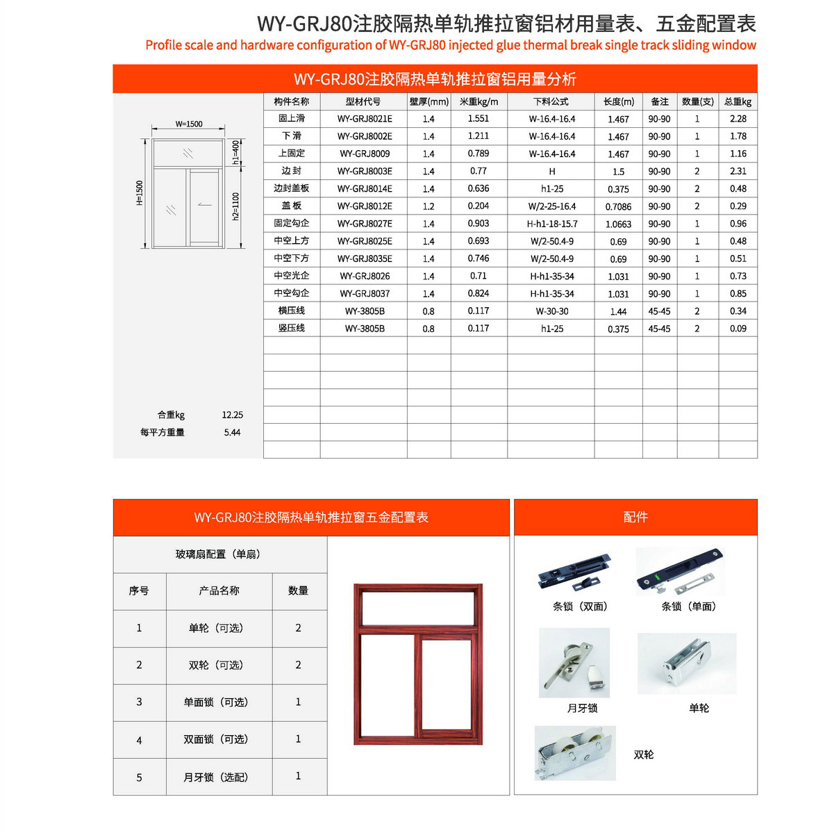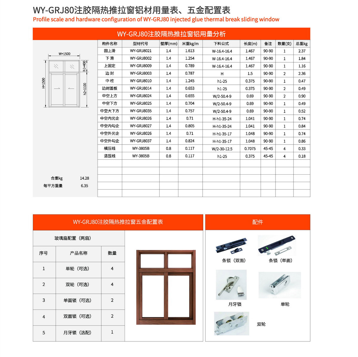 主型材:边封宽80mm,型材壁厚1.4mm;采用美式注胶断桥铝型材,强度高,降低传导系数,保温隔热性能优越,抗拉、抗剪强度高。 连接方式:采用螺钉90度插接,加工工艺方便、简单、可靠 玻璃槽口:24mm、25.6mm、27.5mm 开启方式:水平推拉 可做窗型:两扇窗、四扇窗、转角飘窗、门联窗等 适用范围:民用建筑和工程 耗材:1.5mx1.5m标准窗型每平方耗材6.4kg