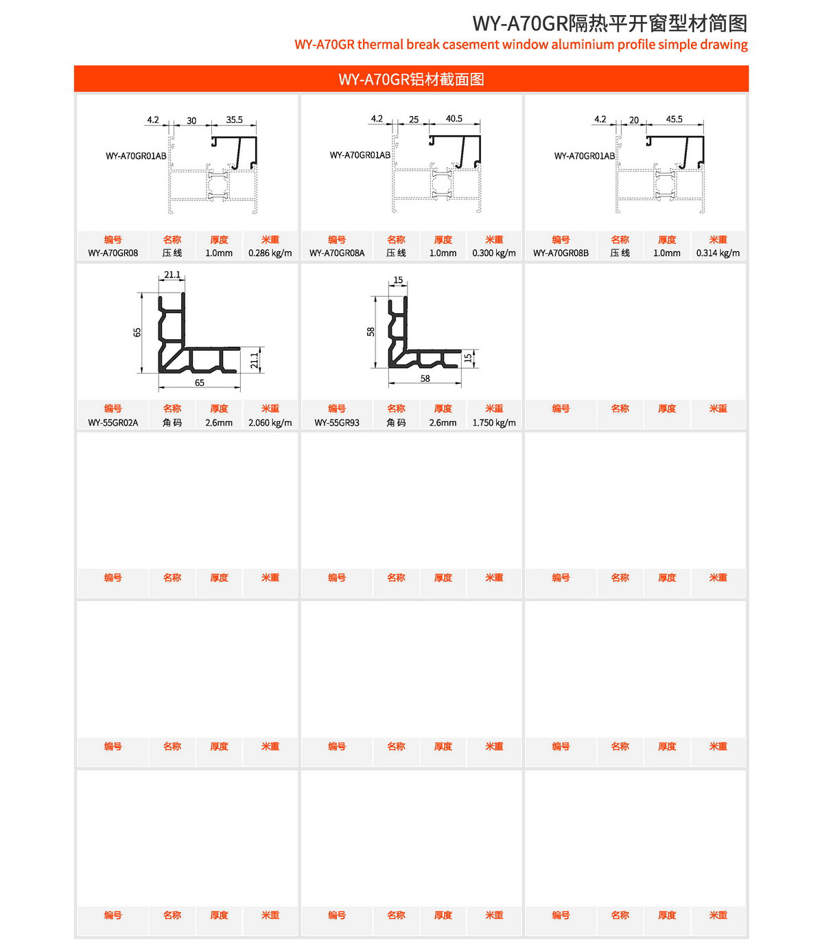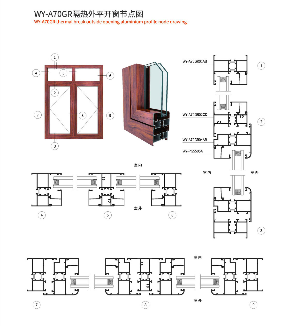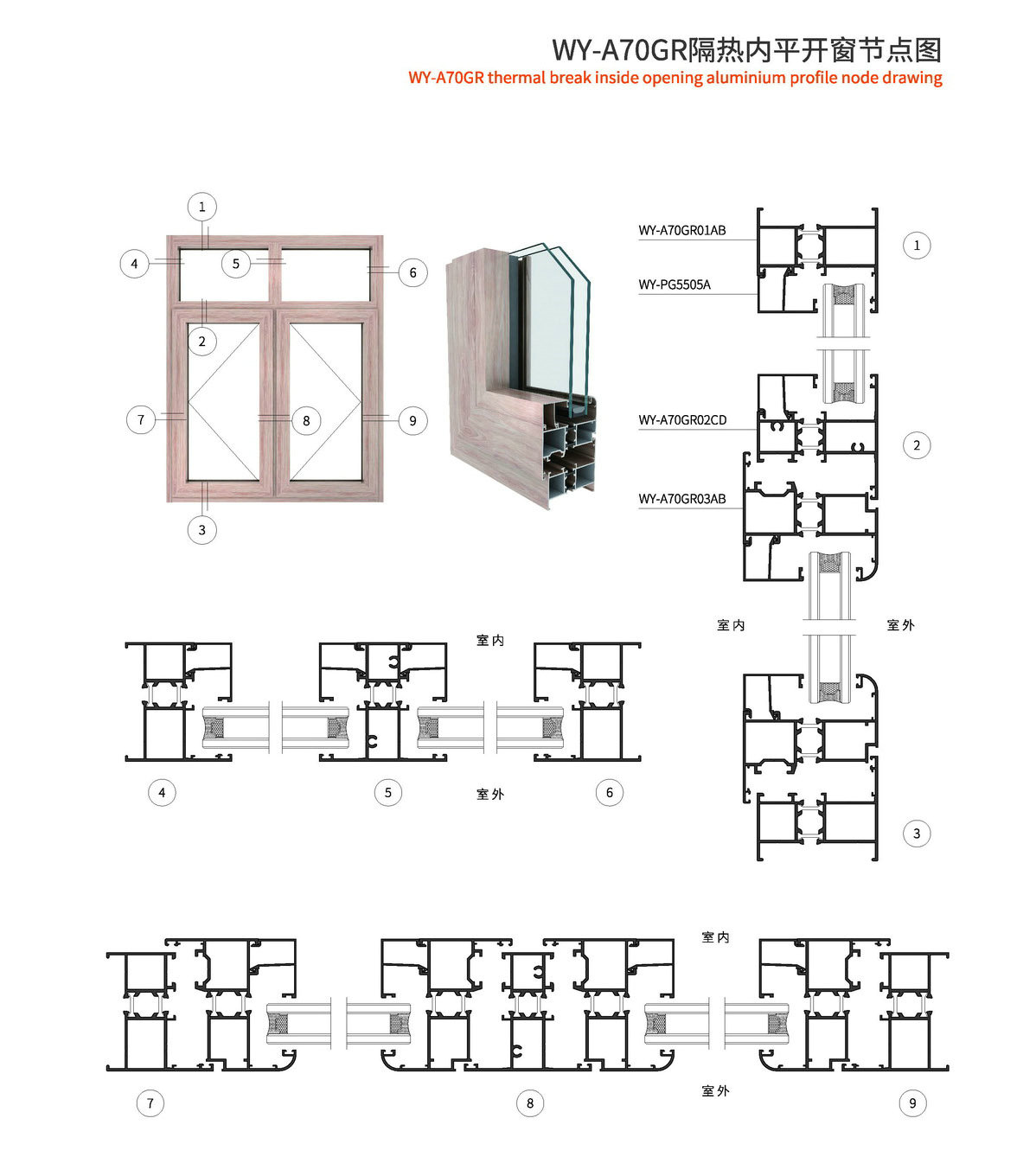 1、型材外框宽70mm,型材壁厚1.4mm; 2、采用优质尼龙玻璃纤维(PA66)14.8mm隔热胶条,传热系数低,保温隔热、隔音性能更优异; 3、此系列可做外开、外开上悬、内平开、内开内倒等; 4、本系列五金槽口采用标准槽口,五金件通配; 5、本系列内开采用等压原理设计,使整窗气密性、水密性更佳; 6、本系列有多种槽口的压线,客户可根据玻璃厚度自行选择压线款式; 7、本系列室内室外可以做两种颜色,外观更美观。