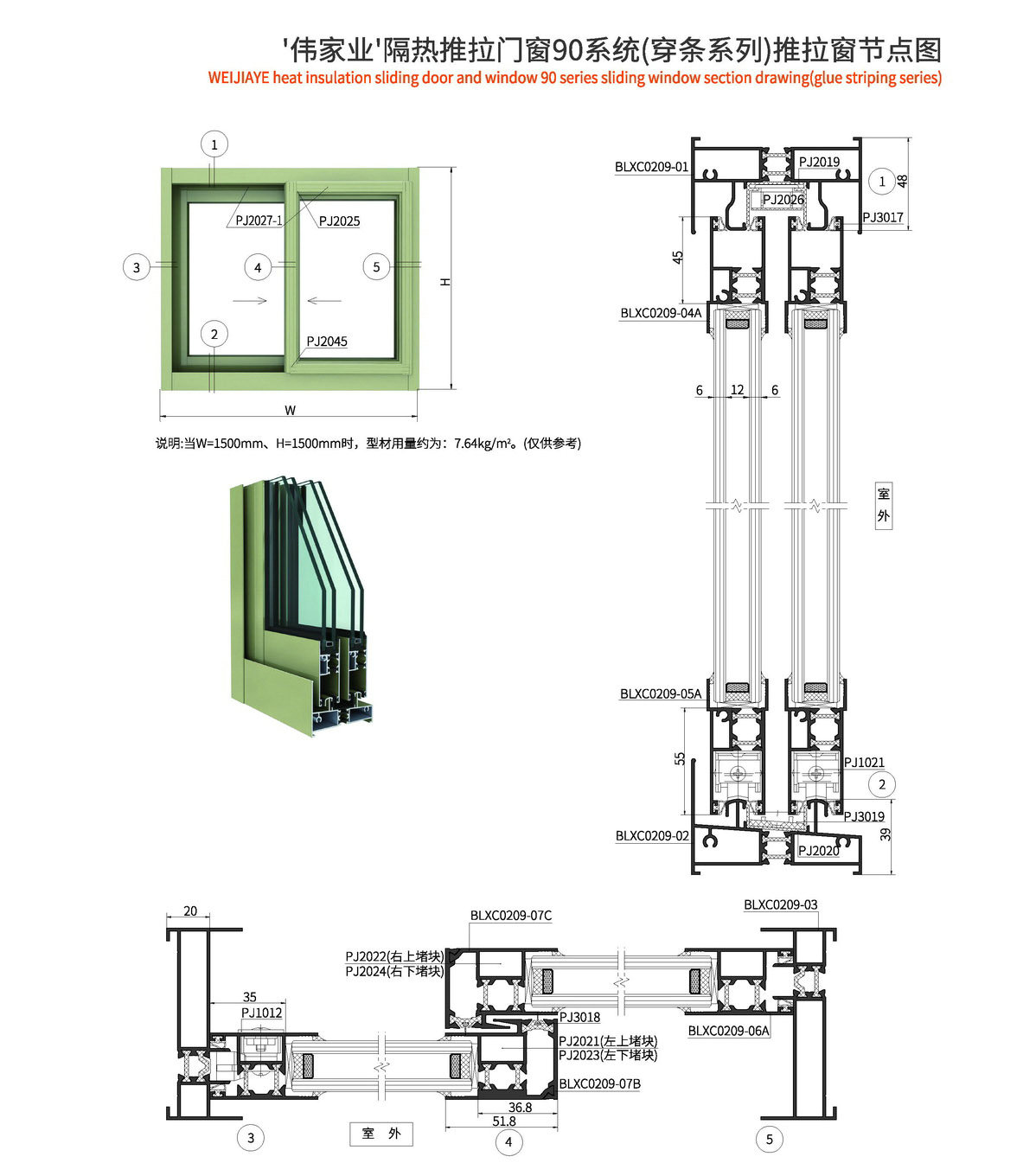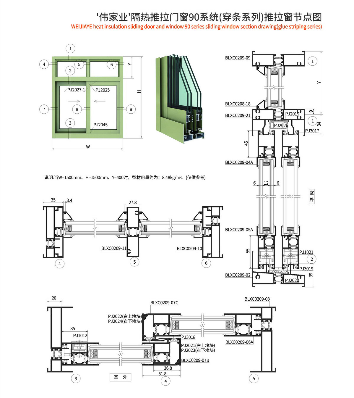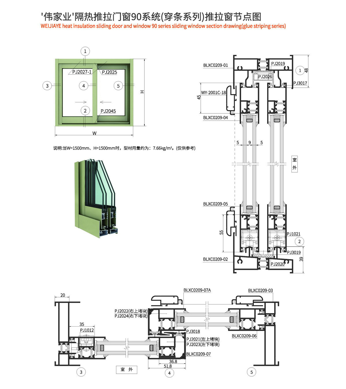 1、本系统现有80注胶推拉窗、90注胶推拉窗、90穿条推拉窗和90穿条推拉门品种并配备了转角和拼接型材,为制做条形窗和带形窗提供了方便。