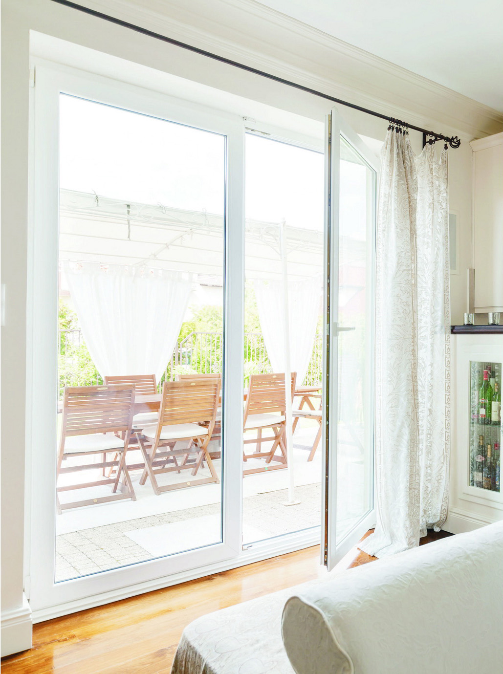 5、做内倒平行推门时,由于此门关闭时,两门扇处于同一平面,所以具有比推拉门更优越的气密性;此门还可以通过内倒进行通风换气;