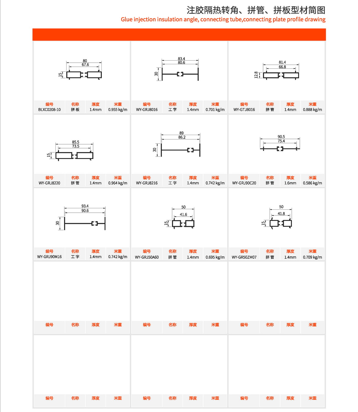 注胶隔热转角、拼管、拼板型材